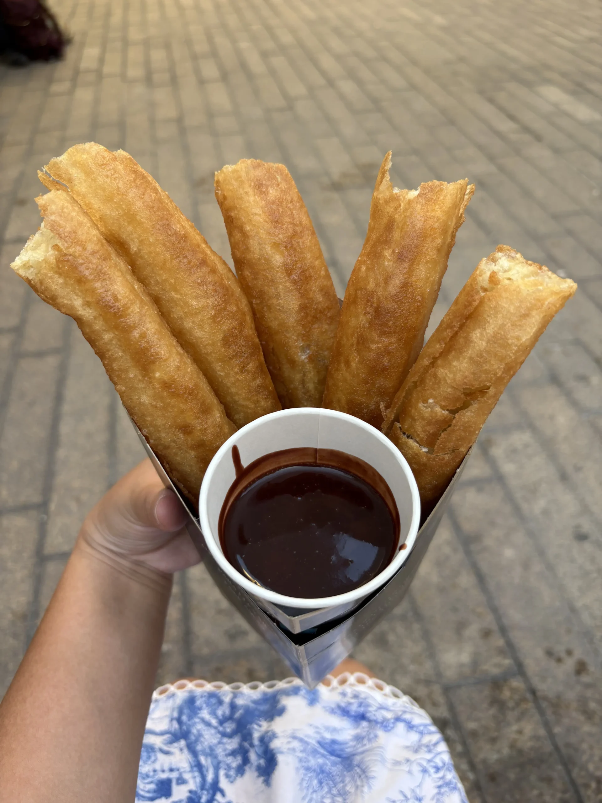 I will start off with a place that has a typical Spanish breakfast, or snack if it’s afternoon, item: The Churro. I know there are Spaniards out there who will not hesitate to remind you that churros are ONLY for breakfast or after 5PM. However, at Bar El Comercio, they sell churros all day from opening to closing, so you don’t have to worry about the “perfect churro time.” The bar is centrally located, so locals and tourists alike can be seen eating inside or taking churros to go through the window out front. Even though the churros look huge, they are so light and airy which makes them so easy to eat. And when paired with the melted dark chocolate, it is the perfect combination.
